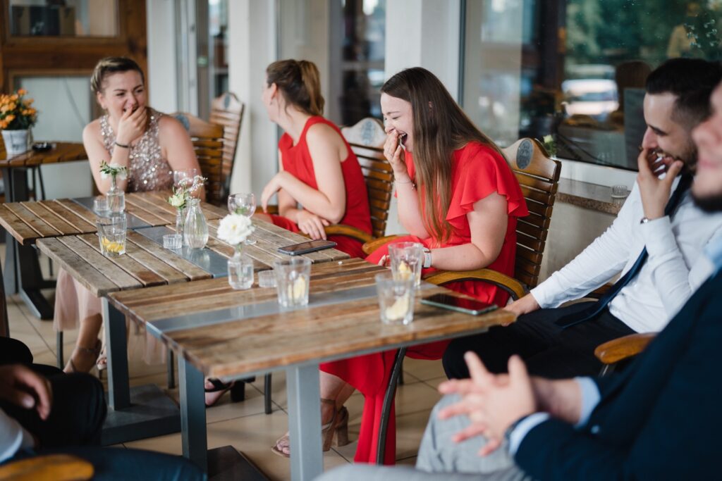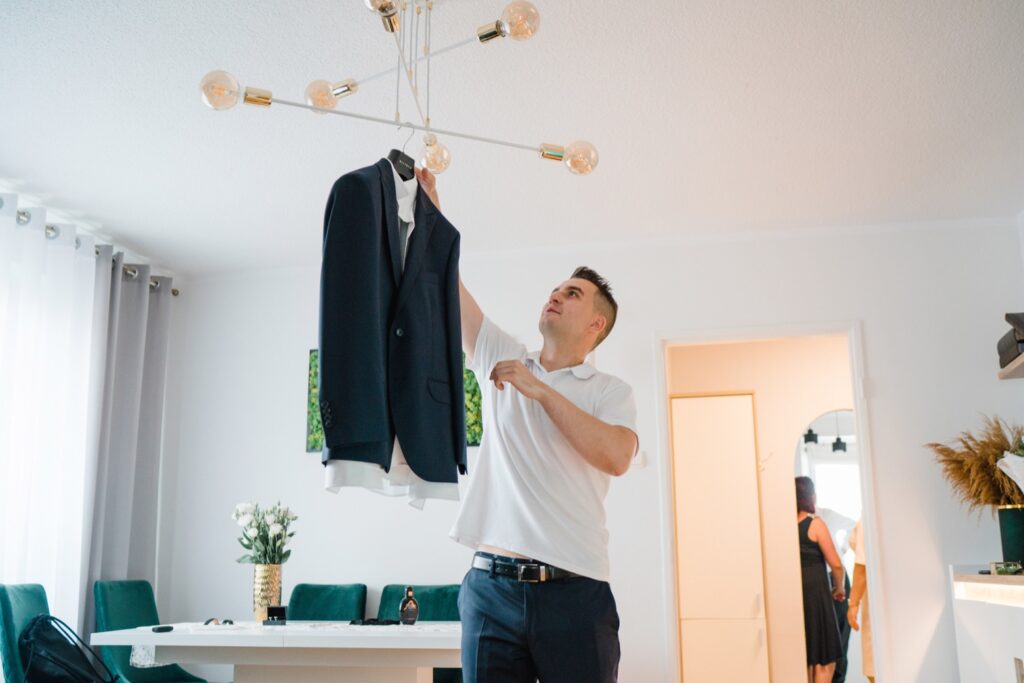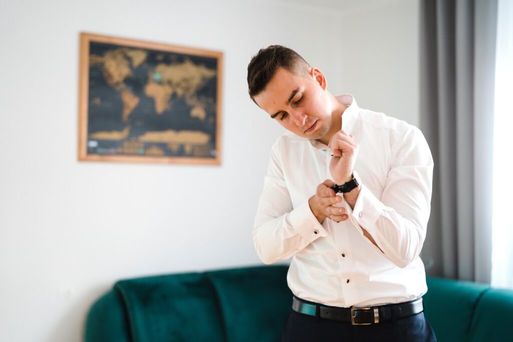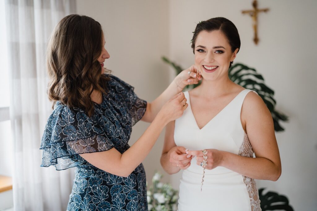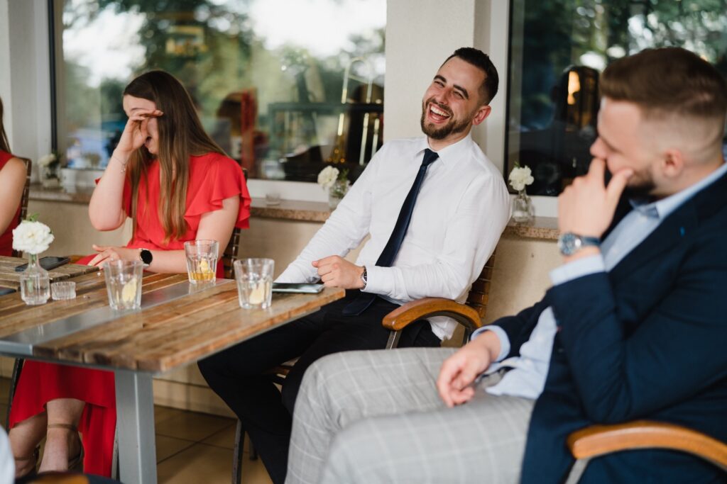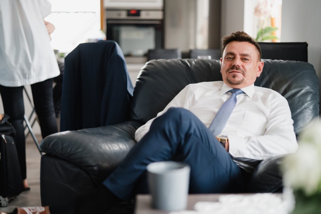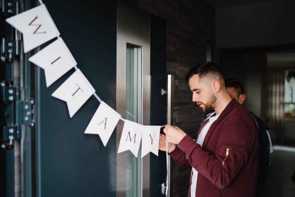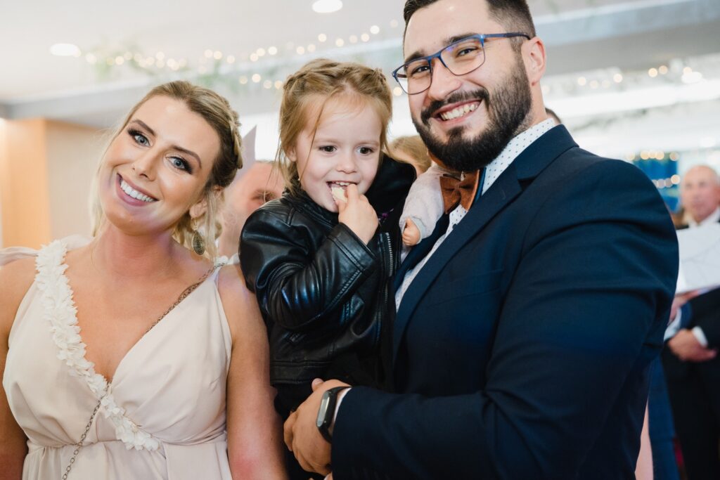 Angelika i Bartek, pełni radości i optymizmu rozpoczęli swoje przygotowania. Uśmiech i aura ekscytacji wyczuwalne były w powietrzu. Jeszcze tylko ostatnie dodatki, subtelna biżuteria, zapięty mankiet oraz czuły uścisk – by móc śmiało wkroczyć w ten nowy etap życia. Błogosławieństwo rodziców dodaje otuchy, symbolizuje wsparcie i pojednanie. Swoista magia towarzyszyła zebranym gościom siedzącym w ławkach i oczekujących Państwa Młodych. Czas staje w miejscu, gdy wszystkie oczy zwrócone są na nich. Ceremonia ślubna jest jednym z kluczowych momentów tego dnia, a wypowiedziane słowa przysięgi symbolizują miłość, wierność i oddanie dwojga ludzi. Fotografując ceremonię zaślubin mam możliwość towarzyszyć Wam również emocjonalnie w tym dniu. Rozbrzmiewające pieśni chóralne, dźwięk kościelnych organów budują niezapomniany klimat. Oranżeria kościoła dodała szyku całej ceremonii oraz podkreśliła wyjątkowość tej chwili. Wraz z pierwszymi oklaskami i wiwatem gości rośnie euforia i ekscytacja całego dni. Pierwsze życzenia i czułe uściski napełniają Parę Młodą szczęściem i nadzieją. Jest to idealny moment na zebranie wszystkich gości i zrobienie zdjęcia grupowego.