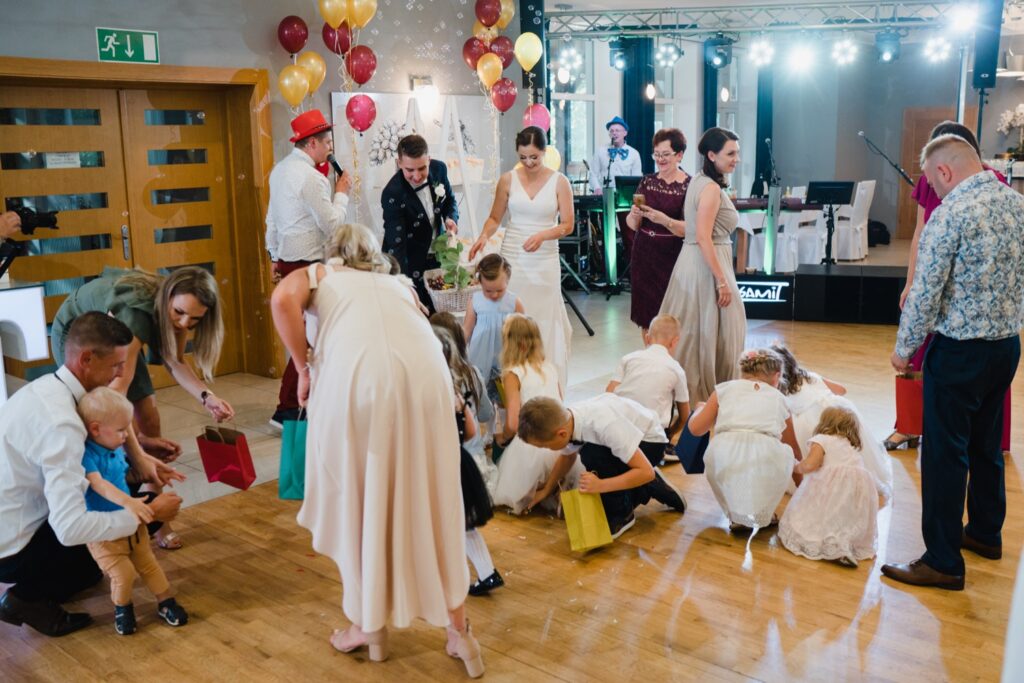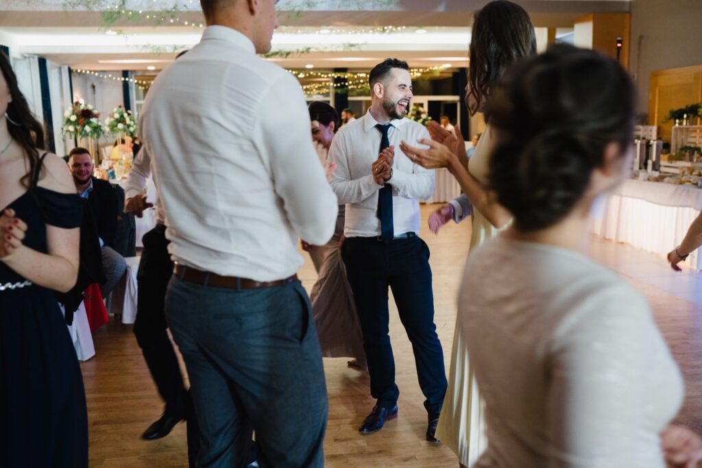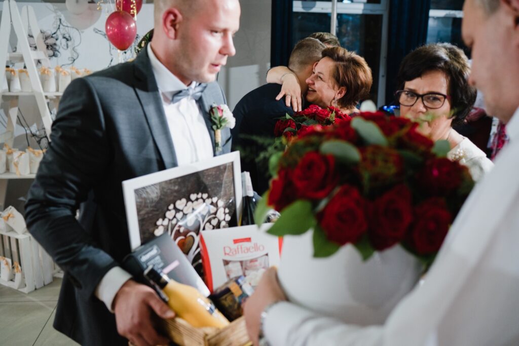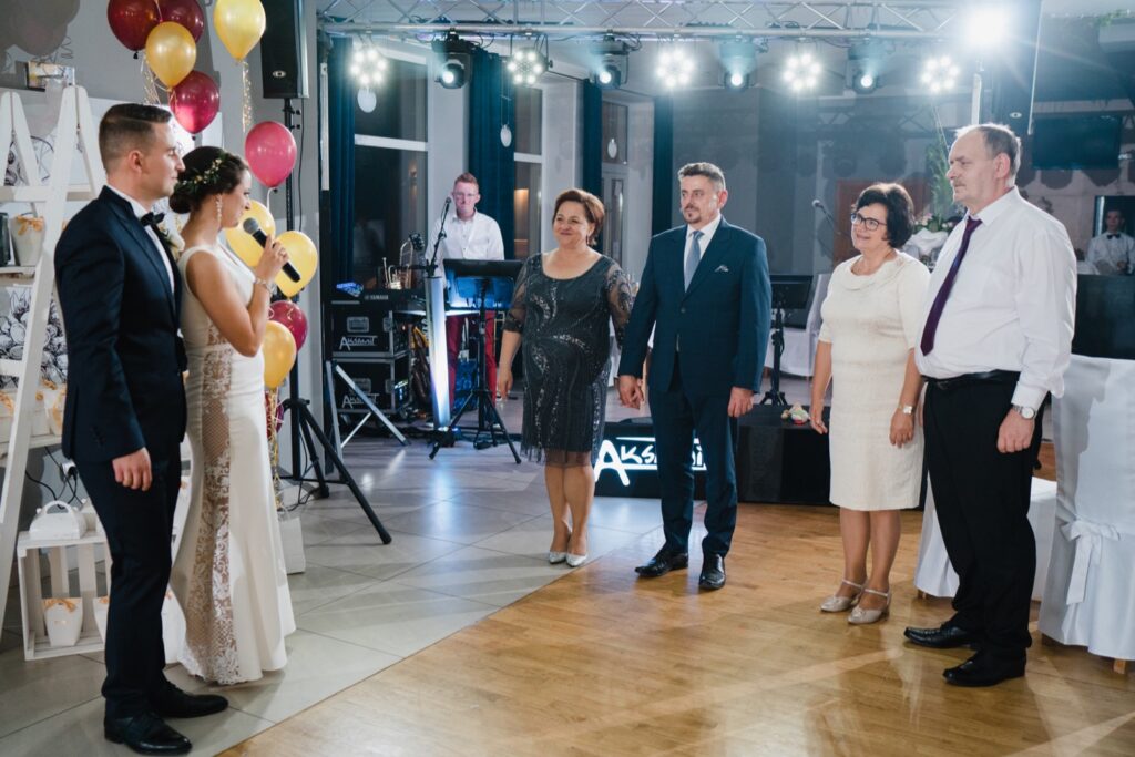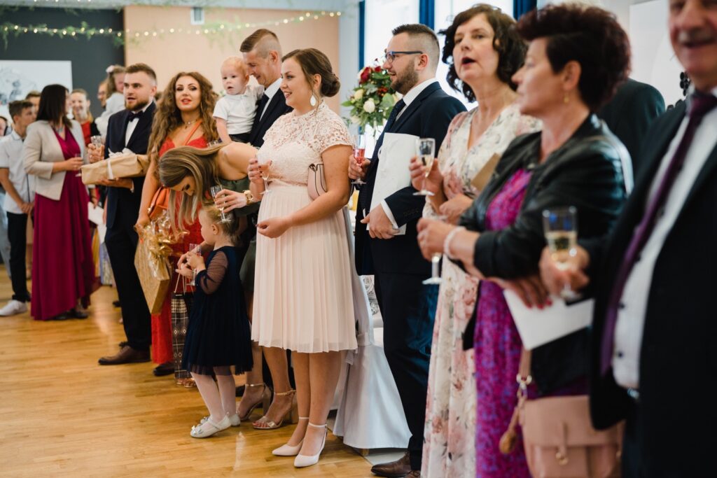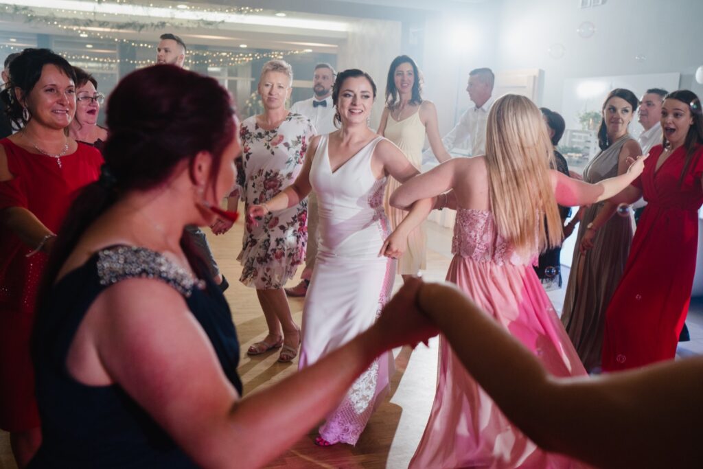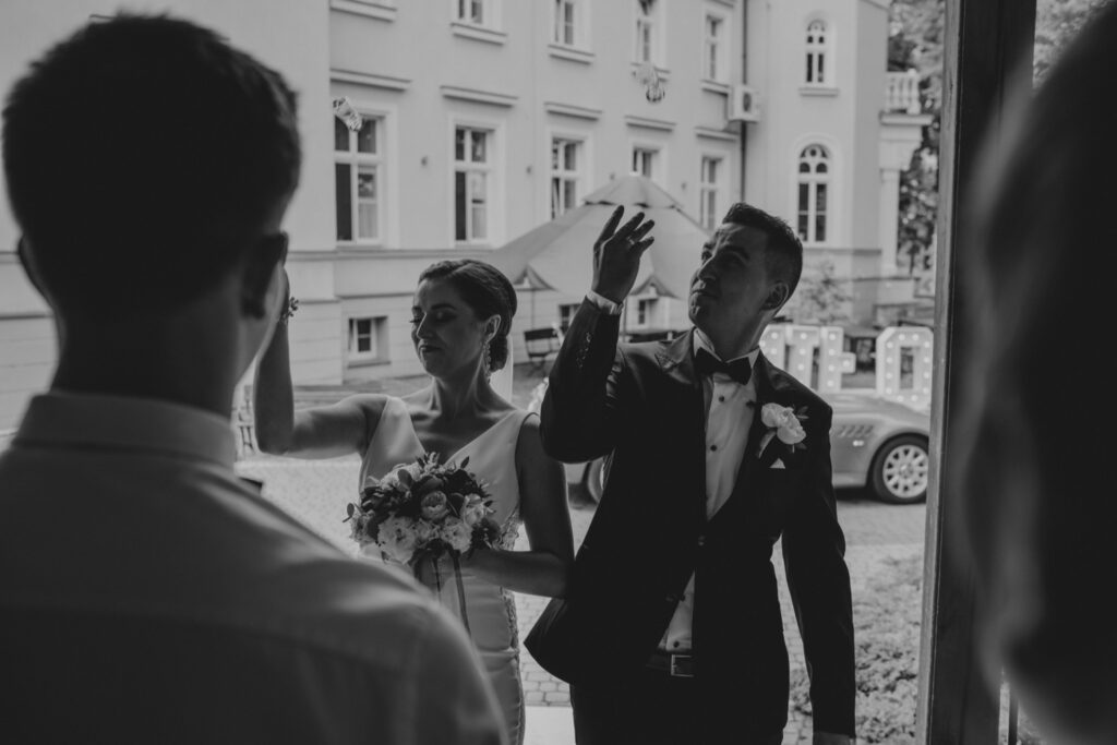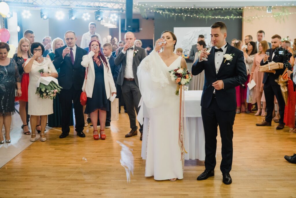 W drodze na salę, Młodej Parze towarzyszą zazwyczaj wspomnienia minionych chwil i nutka ekscytacji przed powitaniem nowożeńców na sali. Chleb i sól na wejściu są symbolami dobrobytu i domowego ogniska. Rolę tę powierza się rodzicom nowożeńców, w geście wprowadzenia ich w nowy etap życia. Pierwszy toast i odśpiewane sto lat są swoistą inauguracją wesela, które zazwyczaj trwa do białego rana. Tym razem miałem przyjemność fotografować w Pałacu Pawłowice, które urzekało swoim wnętrzem i zachwycało wystrojem. Najmniejsze detale i profesjonalna obsługa dodawały perfekcjonizmu i podkreślały istotę tego dnia. Nikt nie mógł przejść obojętnie obok malowniczych fasad i wyjątkowych zdobień. Pałac Pawłowice to miejsce, które sprzyja nie tylko podziwianiu, ale i dobrej zabawie. Spontaniczności i dynamika gości sprawia, że fotografia ślubna przybiera inny wymiar, a towarzyszące im zdjęcia ślubne są odzwierciedleniem całej historii. Fotograf ślubny to osoba, która rozmawia i przeżywa z gośćmi emocjonalnie ten dzień. Podniesione kieliszki, rozbrzmiewająca w uszach muzyka i spontaniczny taniec są odzwierciedleniem udanej imprezy. Wiele chwil, ciężko dostrzegalnych podczas wesela można przeżyć ponownie oglądając film i zdjęcia ślubne